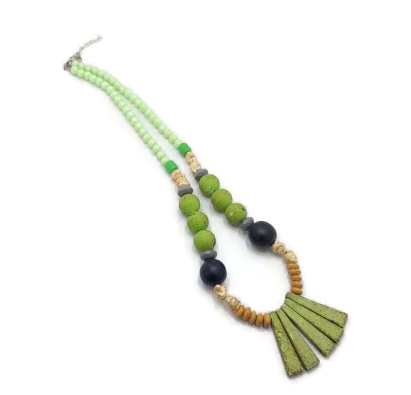 Jewelry Women Necklace Vintage Of Beads Green Handmade Primitive Fashion Elegant