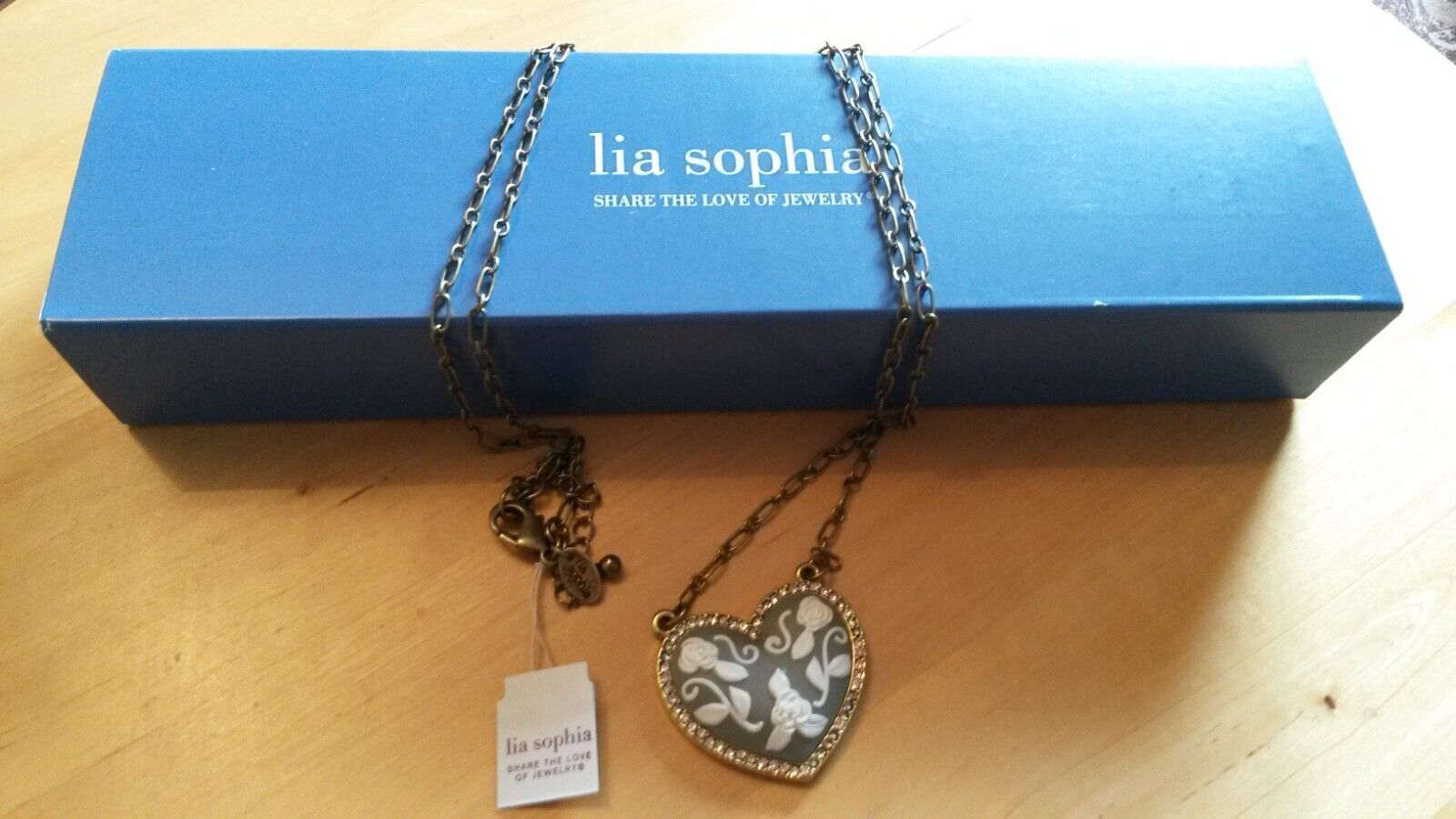 Lia Sophia Love Heart Black White Vintage Charm Pendant Chain Necklace Jewellery