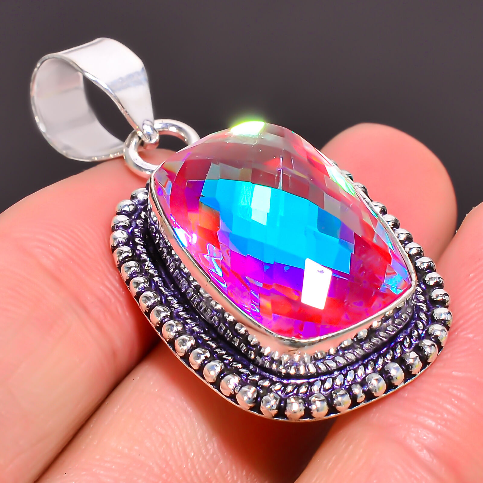Mystic Quartz Vintage Handmade Jewelry 925 Sterling Silver Pendant 1.7″ ig_2097