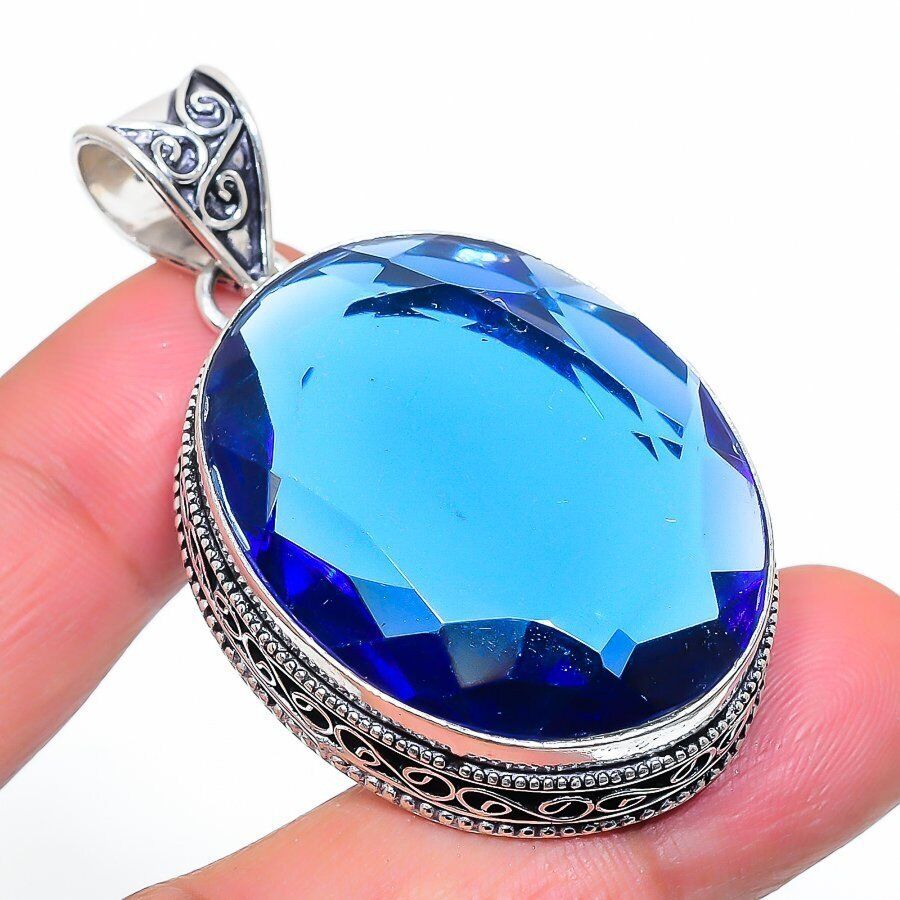 Tanzanite Quartz Gemstone Pendant Handmade Gift Oval Shape Vintage Jewelry 2.20″