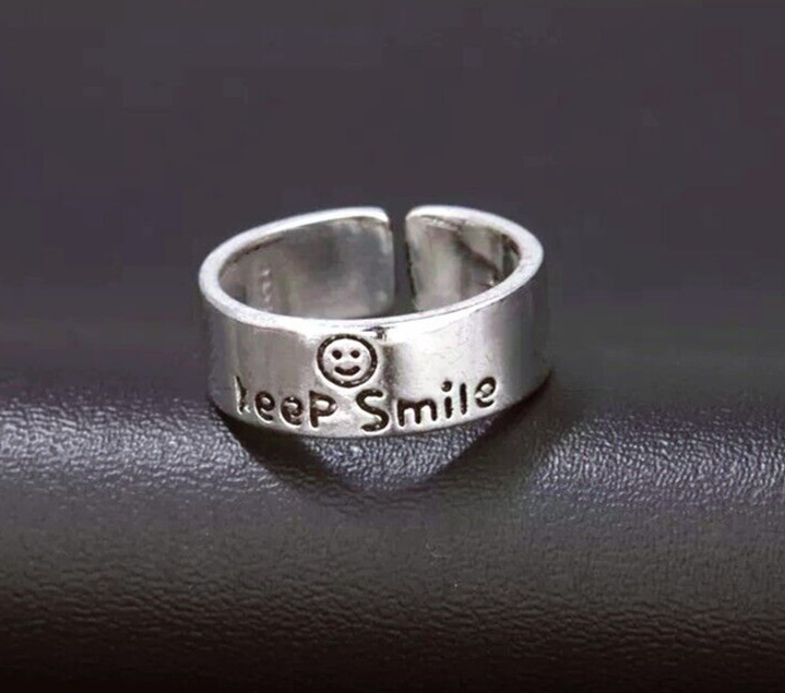 Vintage 925 Sterling Silver PLT Smile Face Adjustable Ring Womens Jewellery Gift