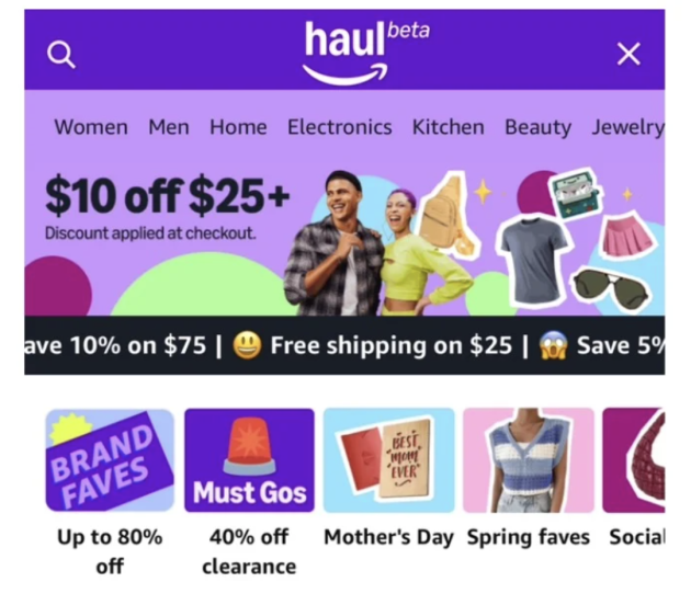 If you’re shopping from your phone, just open the Amazon app and type “Amazon Haul” into the search bar. Look for the curated section that shows eligible items (especially clothing, shoes, and accessories) with that signature promo banner.