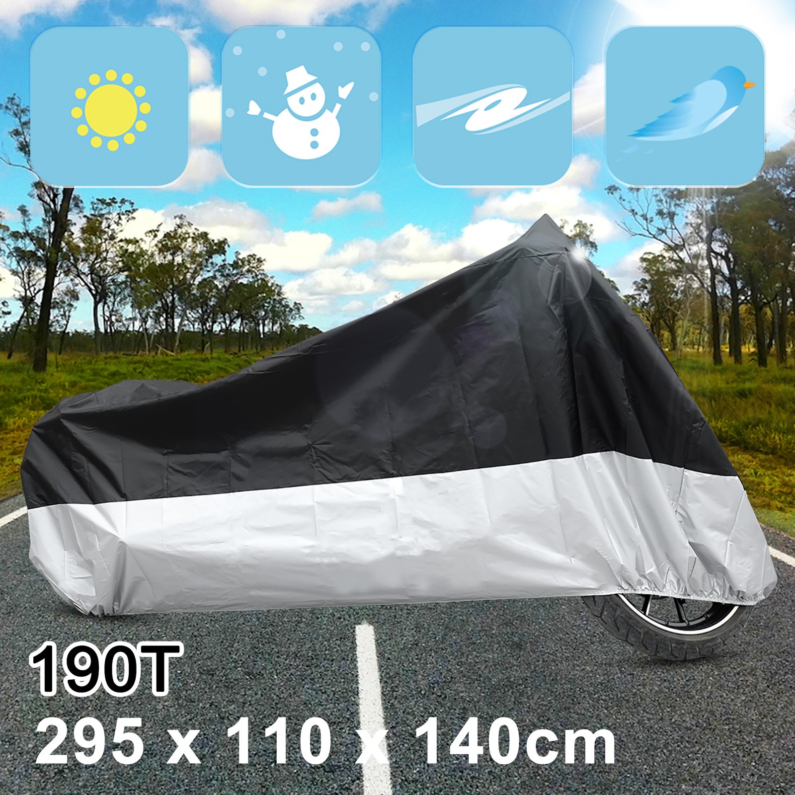 XXXL 190T Rain Dust Motorcycle Scooter Cover Black+Silver Outdoor UV Protector