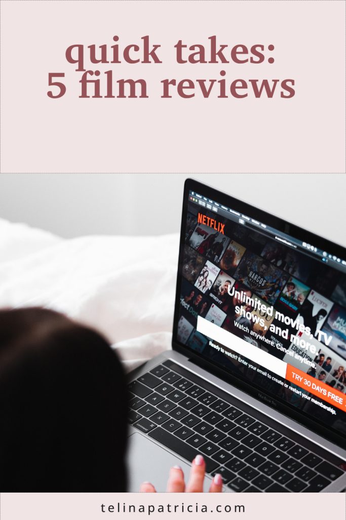 In today’s Quick Takes post, I’m sharing five quick reviews of films I’ve watched recently — from rom-coms to sci-fi. In this edition, all films are available on Netflix or Amazon Prime. Check out my thoughts: