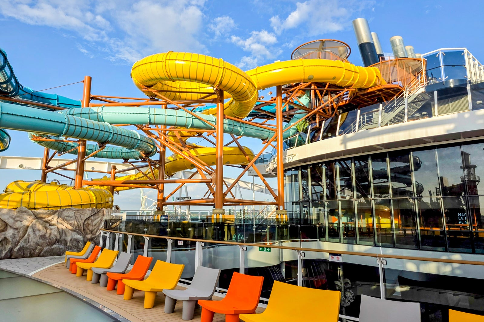 For good old-fashioned splashy fun, MSC World America brings the thrills with Aquapark — a colorful maze of themed slides, splash zones and a dual racer slide with a speed timer to race your friends.