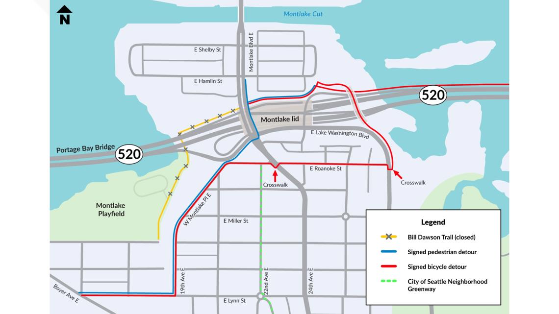 SEATTLE — The Bill Dawson Trail in Seattle, which connects Montlake Playfield to the edge of the Highway 520 bridge, is set to close on May 12 for five years.