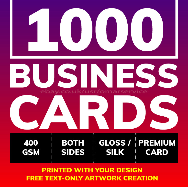 1000 Business Card Print Full Colour Single & Double Printing Premium 400gsm