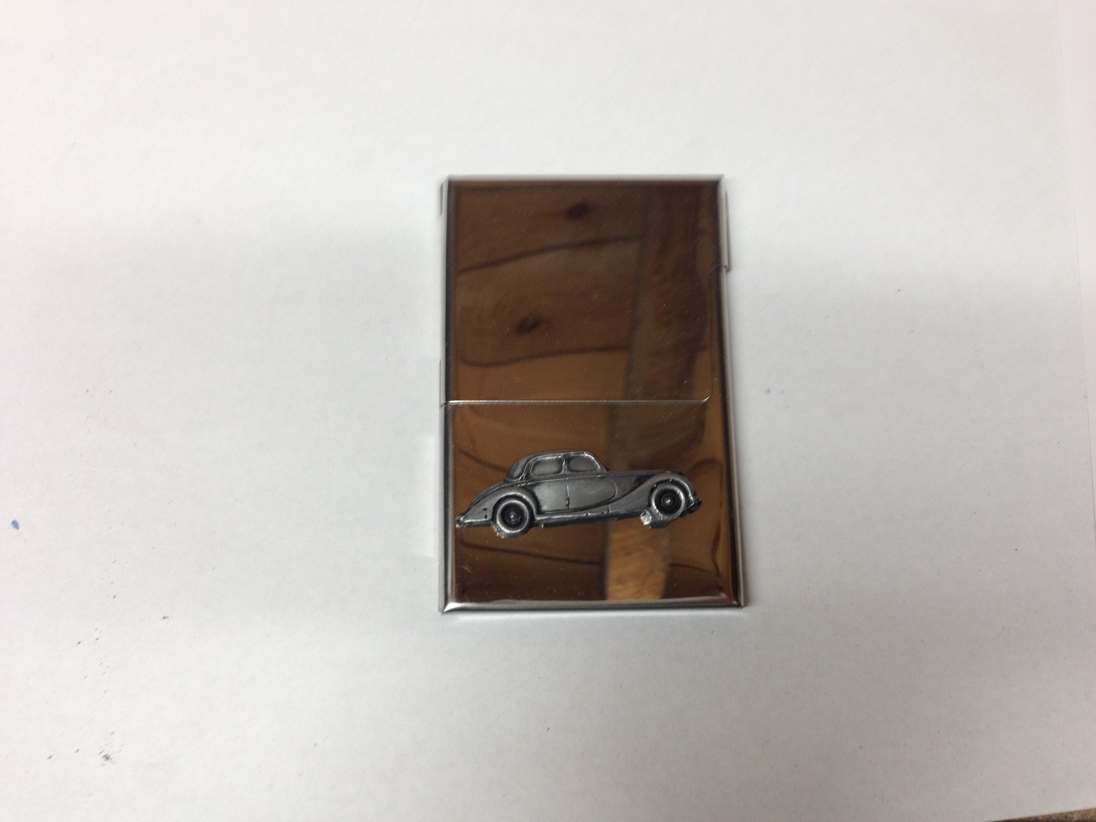 Riley RM ref210 Pewter Effect Car on a Stainless Steel Business Card Holder