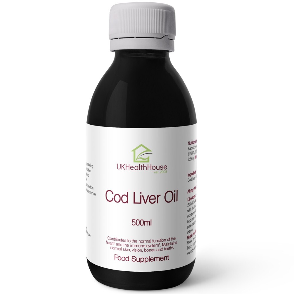 Cod Liver Oil Liquid 500ml High Strength Omega 3 Vits A & D Heart Brain (1 pack)