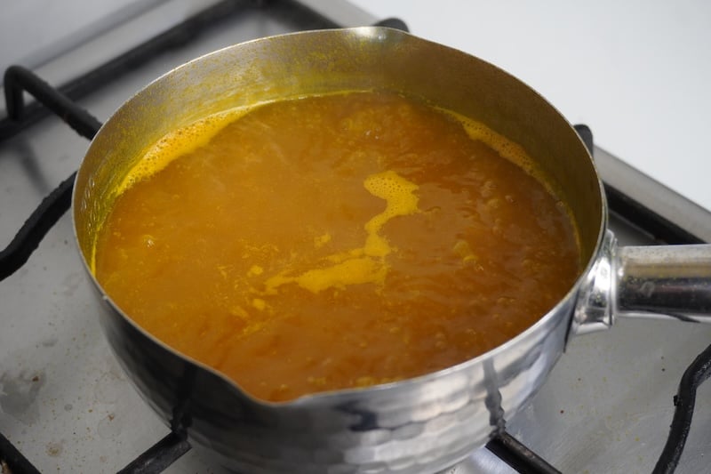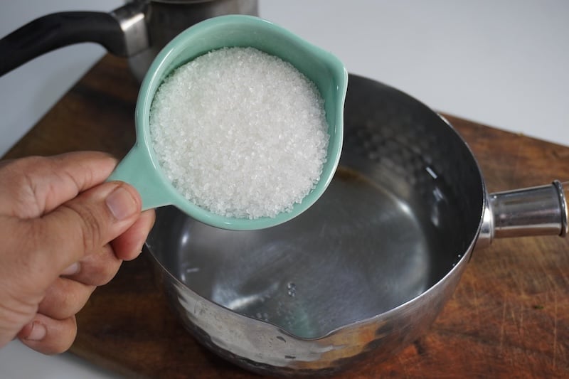 7)Bring to a boil. Stir until all the sugar has dissolved. Turn off the heat.