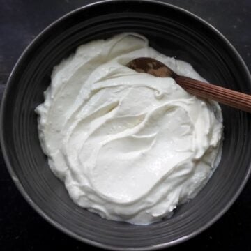 For making greek yogurt use few spoons of yogurt from your previous batch. You can use store bought yogurt if you don’t have leftover yogurt or you are making yogurt for the first time. Even though store bought curd can be used. But it is best to use homemade yogurt for making greek style yogurt or any yogurt for perfect thick set.