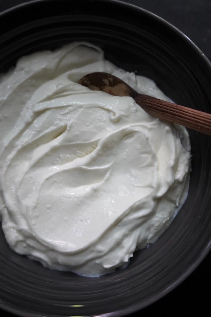 9)After 4 hours, this is how the greek yogurt looks. Thick and creamy.
