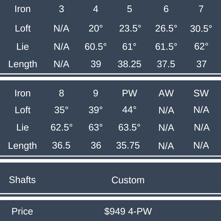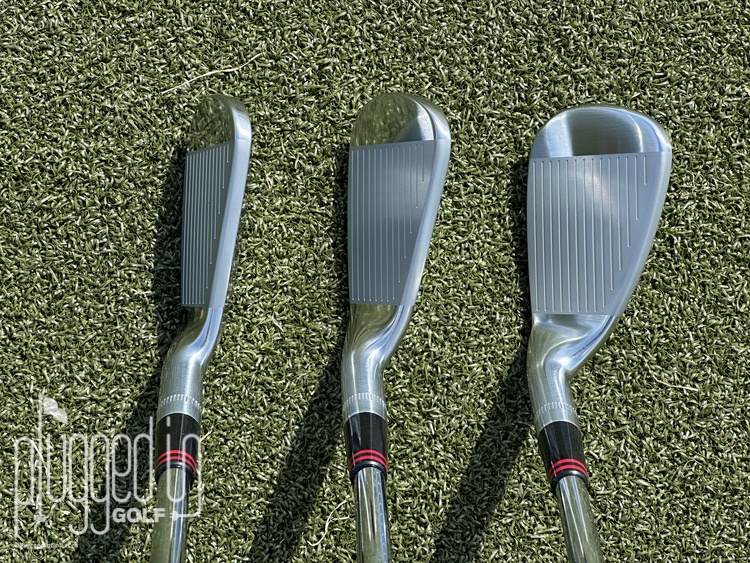 At address, there’s noticeably more offset than I’ve seen in comparable clubs. As always, this isn’t inherently good or bad, just a preference, though it does likely push this set more toward the game improvement player. The offset is the only spec that doesn’t hew to the players distance formula as the blade length and top line are both about average.