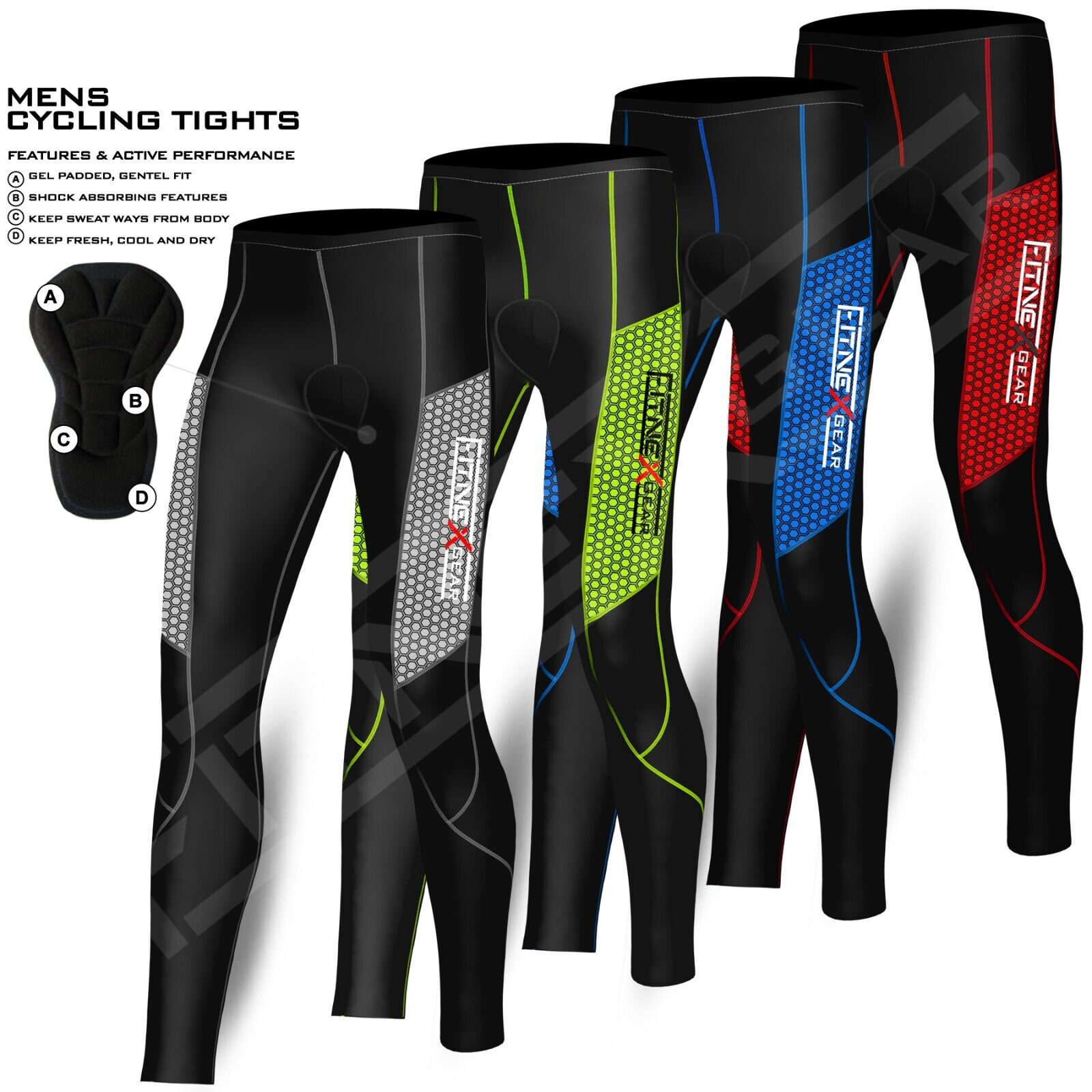Mens Cycling Tights Padded Base Layer Compression Trousers Sports Cycle Leggings