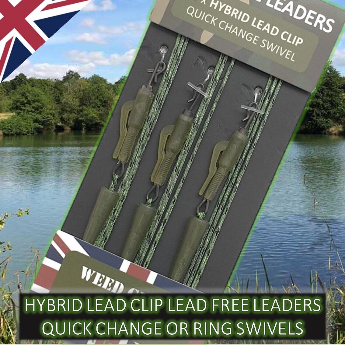 Carp Leaders Lead Free Hybrid Lead Clip Swivels Fishing Tackle 60LB 3 Pack Rigs