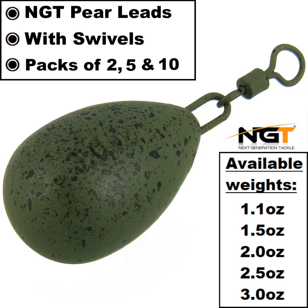 NGT Pear Leads Weights Carp Coarse Fishing 1.1, 1.5, 2.0, 2.5, 3oz – ALL SIZES