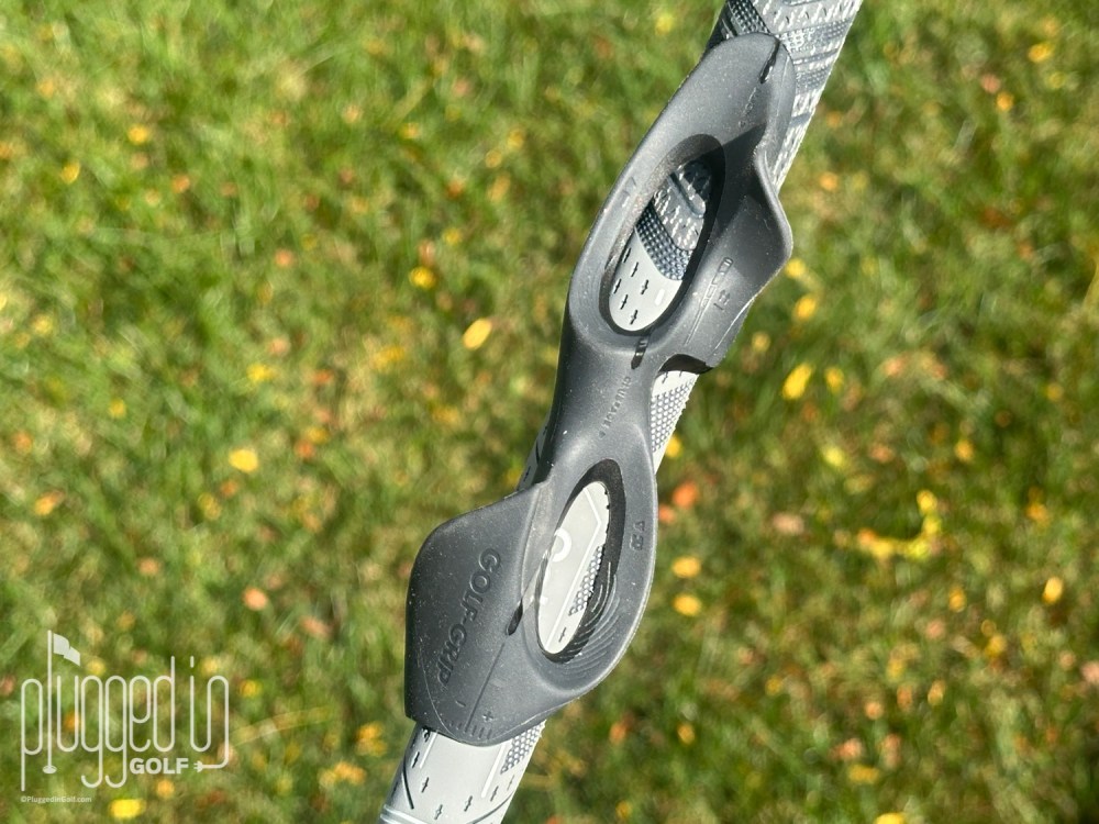 Putting the Golf-Grip onto your club takes only a couple seconds, so it’s easy to move it from club to club during a practice session. Getting the alignment just right can take longer, depending on how particular you are. If your grips have an alignment marker on them, getting this trainer on straight becomes much easier. The trainer can move a bit depending on the quality of contact but never more than a fraction of an inch. Getting it back in place takes just a second.