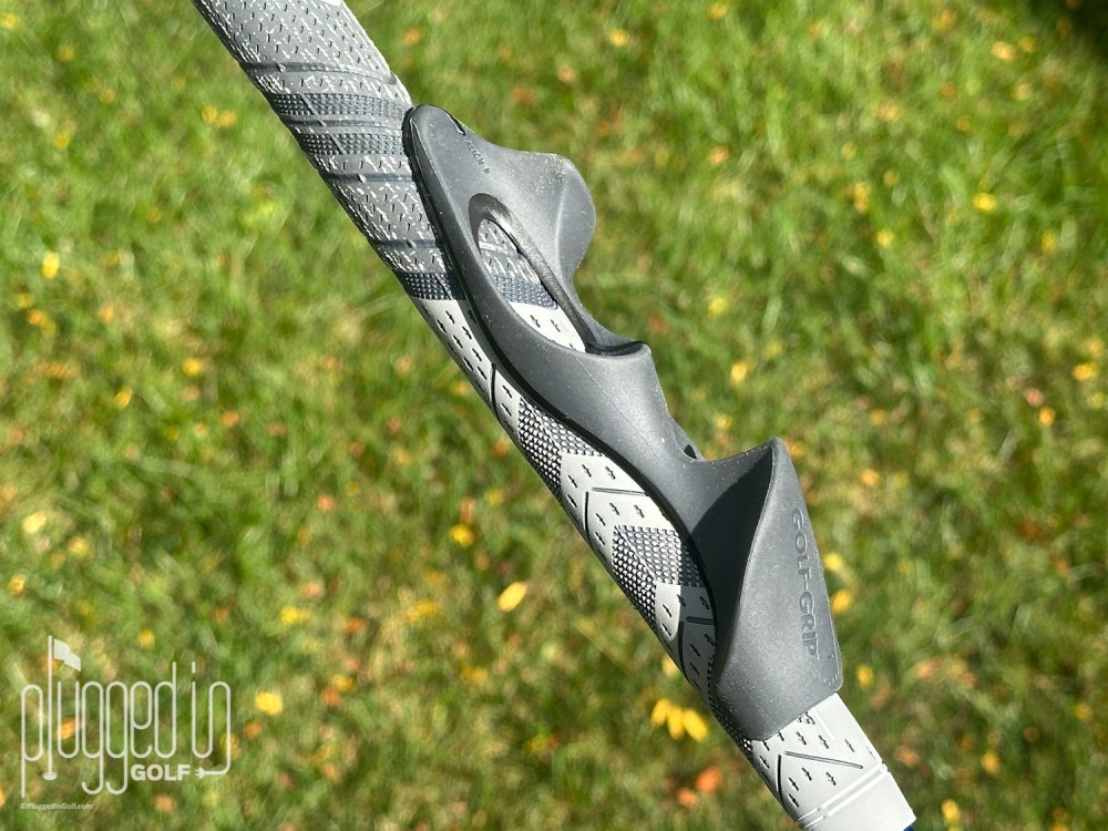 The idea behind the Golf-Grip training aid is the same as any other molded grip: force your hands into the right position so you learn A) how to grip the club correctly and B) how to swing with that grip. It does this very effectively while still giving the feel of your normal grips, both in terms of texture and the weight of the club (the trainer only weighs twenty grams).