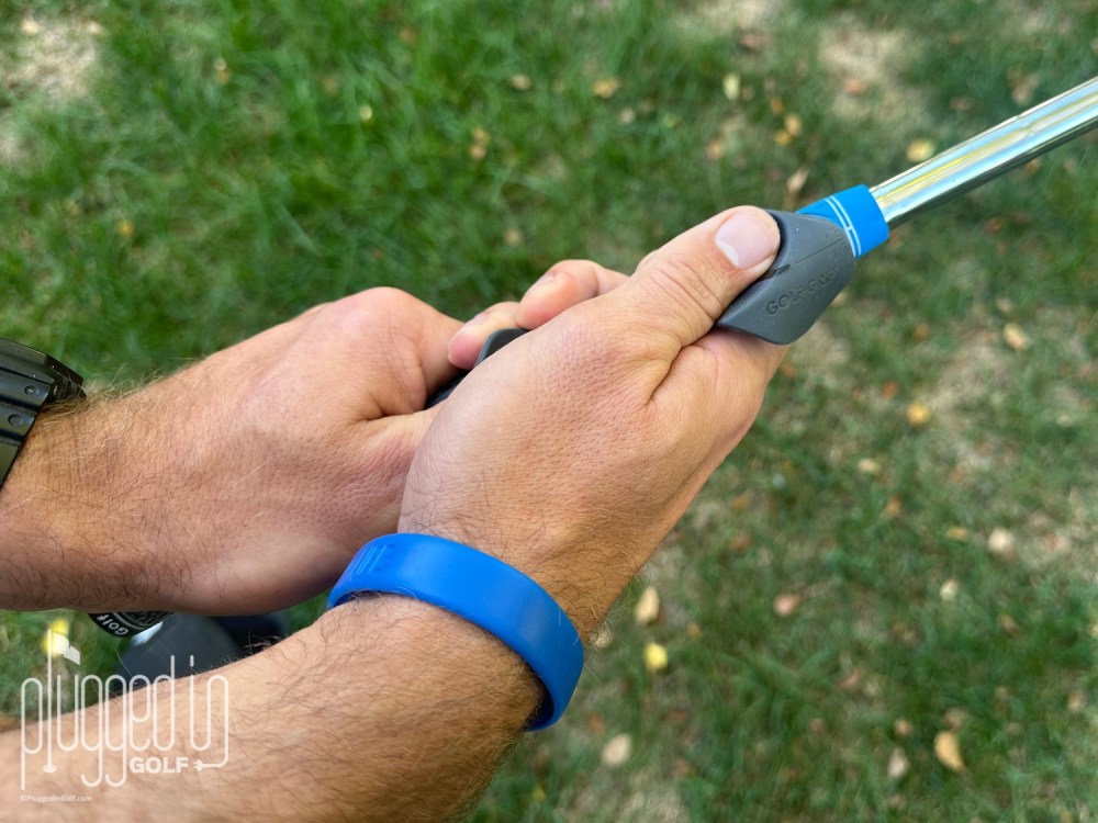 Using the Golf-Grip training aid is very easy. Buy the right model for your swing (right or left handed), snap it onto the grip of your club, and allow the trainer to guide your hands into the right position. You can fine-tune the positioning to favor a stronger or weaker grip, but the “stock” position aligns the trainer with a square club face.
