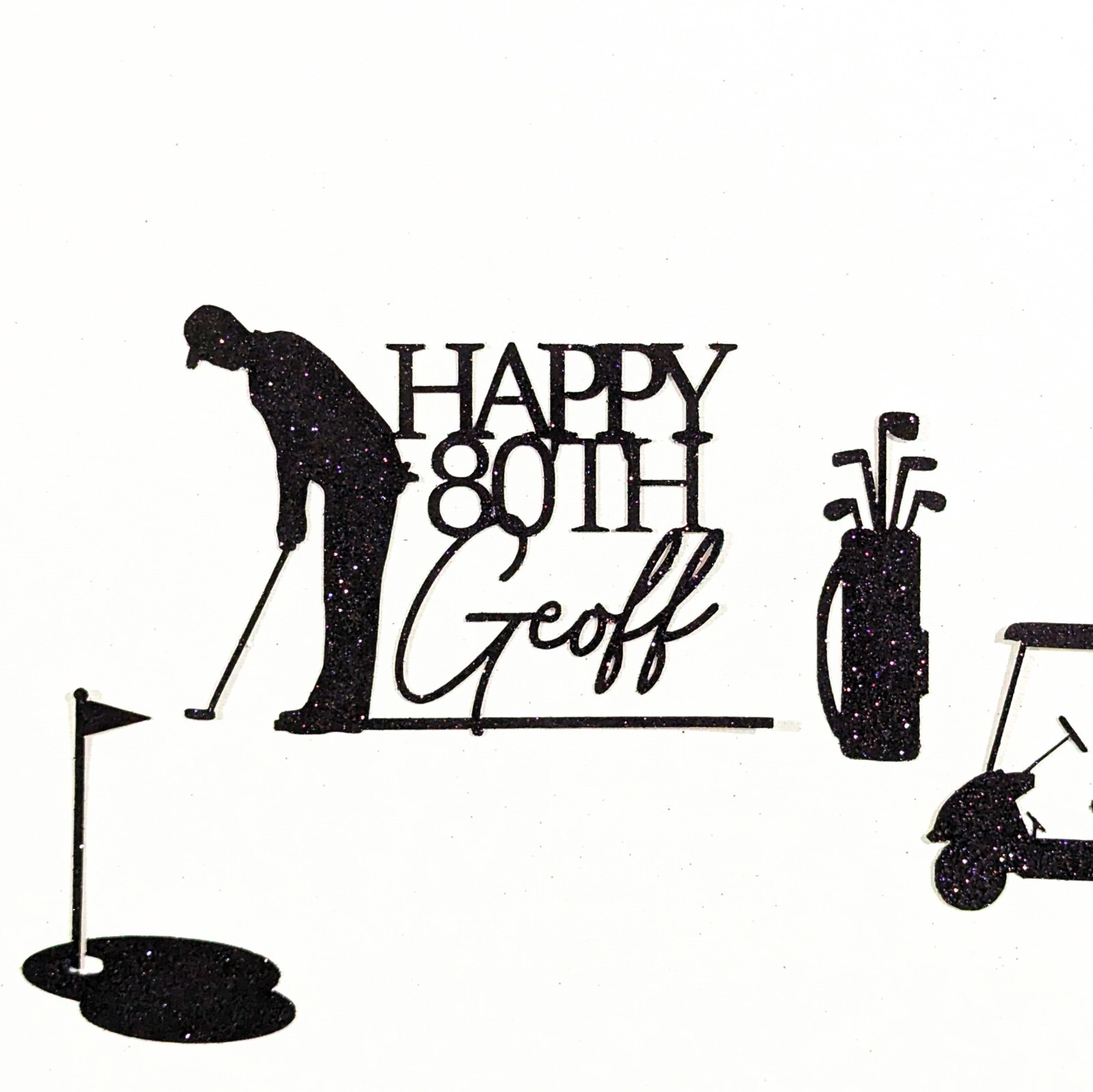 Golf Themed Cake Topper Glitter Gold / Black Personalised with Free Delivery