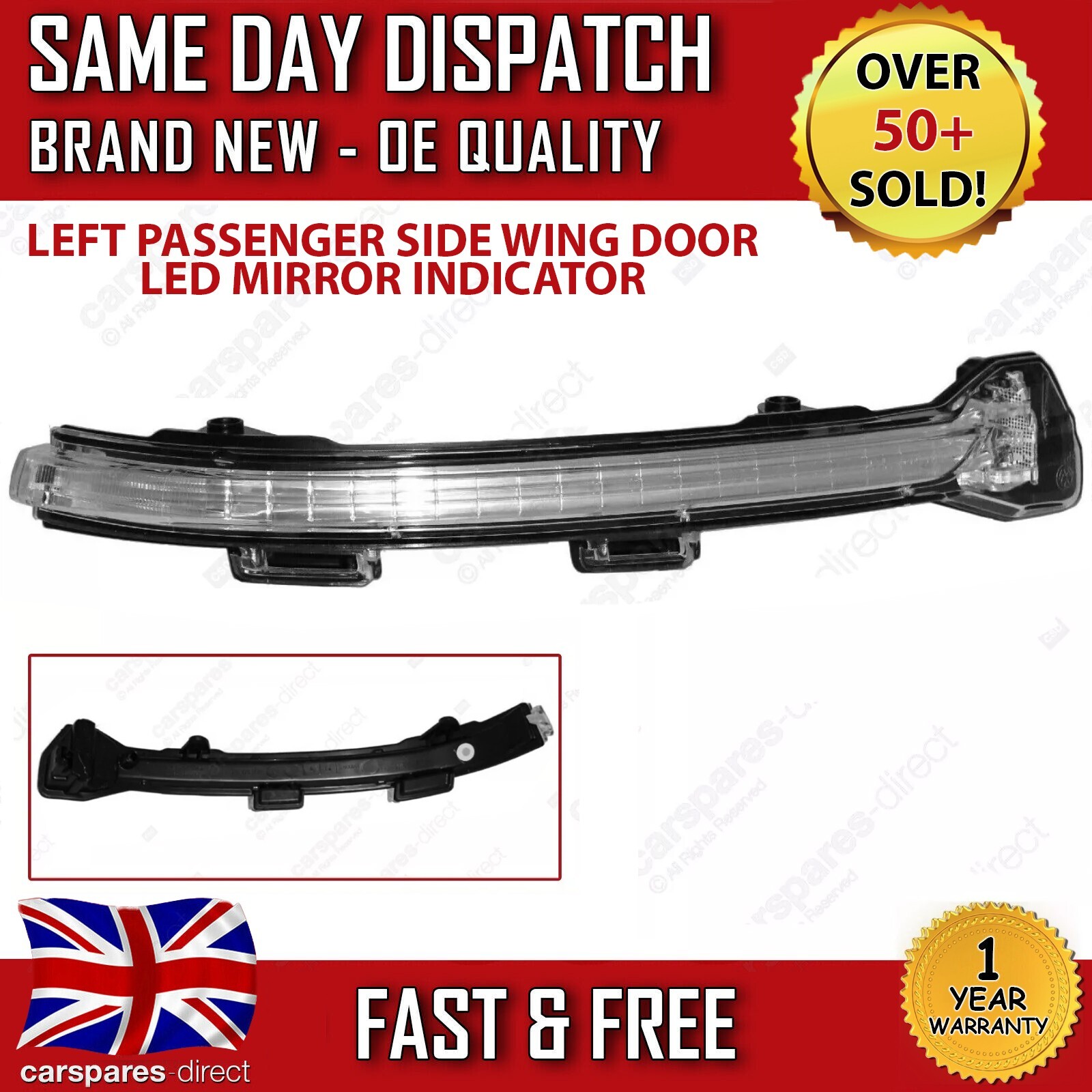 VW GOLF MK7 2012-2021 LEFT PASSENGER SIDE CLEAR LED WING DOOR MIRROR INDICATOR