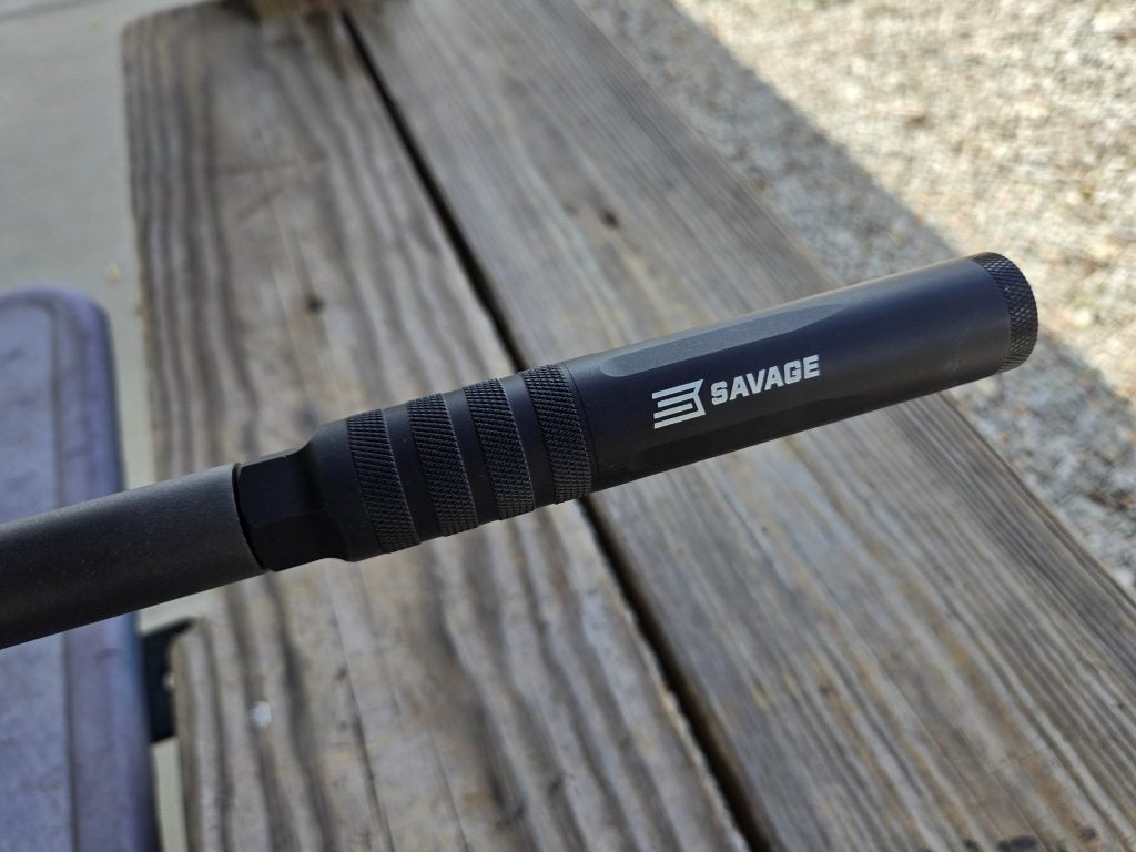 I quick recap of the A22 is that it’s an aluminum suppressor with a monocore design. It has built-in self-cleaning carbon cutters, and is fully user serviceable using common tools. The external finish is a black hard-coat anodizing. Savage lists the sound reduction at 114 dB with subsonic rounds and 135 dB with supersonic rounds.