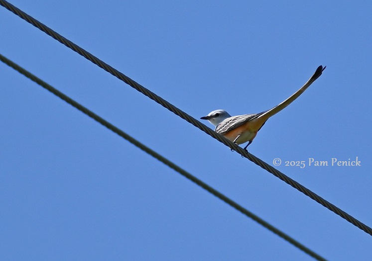 Scissor-tailed flycatcher is one of my favorite birds to see in farm country, where it swoops over fields in aerial stunts enabled by its long, forked tail.