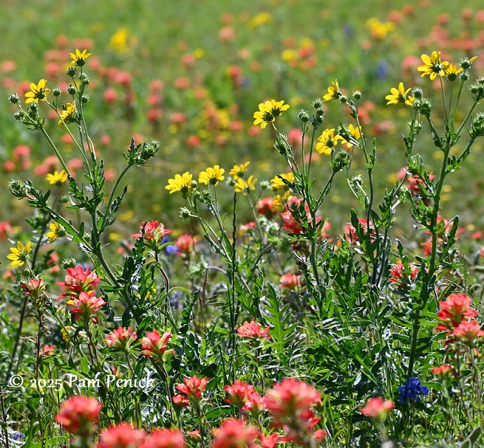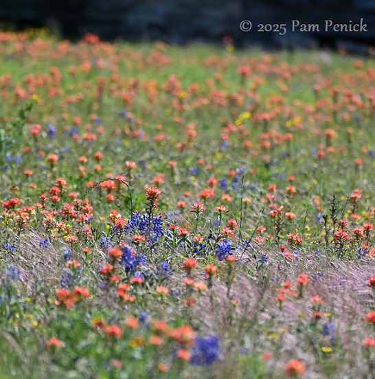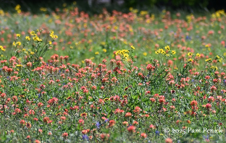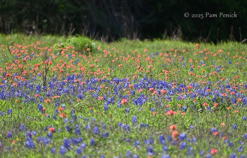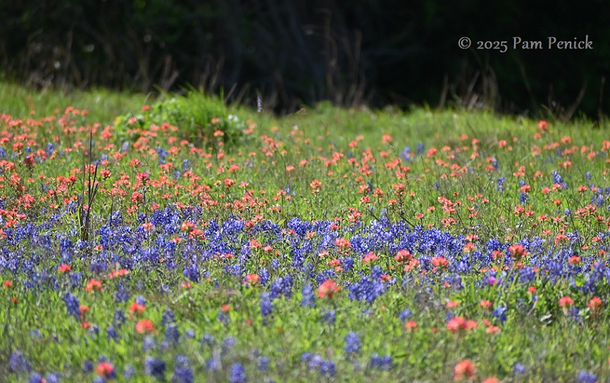 The wildflower reporters I follow — and my own eyes — say this is a poor year for Texas bluebonnets and other spring wildflowers, especially from Austin west into the Hill Country. Our ongoing drought kept seedlings from germinating last fall, and there hasn’t been much rain this spring to nudge stragglers into bloom. But east of Austin, the picture is brighter thanks to better rainfall.