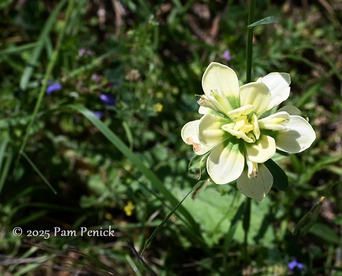 I was stumped by this solitary white flower, but a Google search later ID’d it as Texas bullnettle. Not one you want to touch because of stinging hairs. Is anyone surprised to learn a Texas wildflower can sting you? Not me. Join the fire-ant crowd, bullnettle.