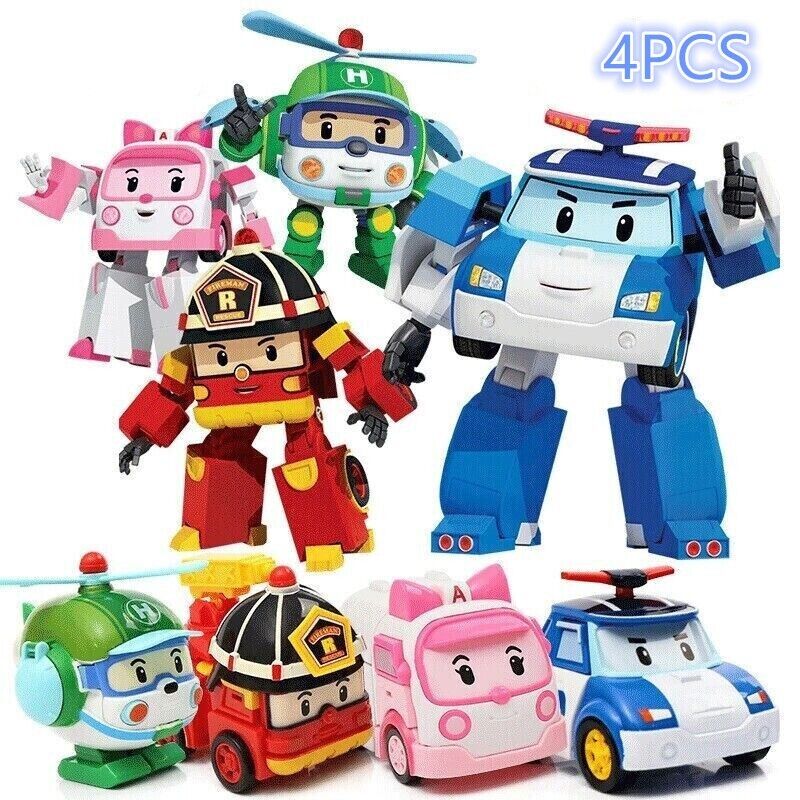POLI ROY AMBER HELLY Robocar Robot Action Figure Car Gift Transformers Toy 4PCS