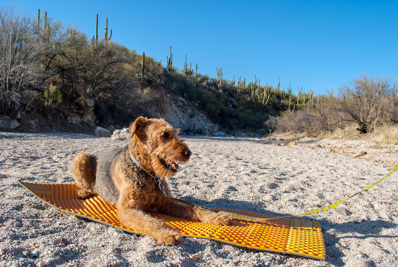 This may seem like overkill, but the desert is littered with rock shards, prickly brush, and cactus needles. If you’re looking forward to a leisurely lunch along the trail, bring something comfortable for your dog to lie down on. It’s a small investment to make everyone’s day more enjoyable.