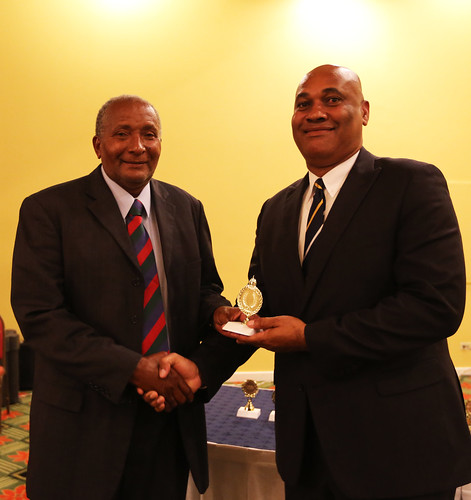 West Indies legend Andy Roberts receives his award from Minister of Sport of Montserrat The Honourable Colin Riley – WICB Media photo