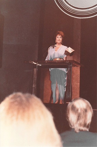 Elizabeth Taylor accepting her award at the Filmex Tribute to Elizabeth Taylor, Dorothy Chandler Pavilion, November 1981.