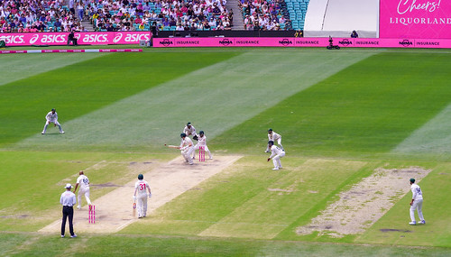 Everything’s in pink as this is the pink Test which supports funding for breast care nurses across Australia. Glenn McGrath’s first wife died from the disease and since 2009, Cricket Australia, Sydney Cricket Ground and the McGrath Foundation have worked together, raising more than $22 million. It’s well received by the Sydney crowd. While this was day 4 of the Test, on day 3, people are encouraged to dress in pink to honour Jane McGrath day. This year there was a larger crowd on day 3 than on the opening day.