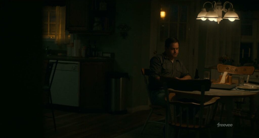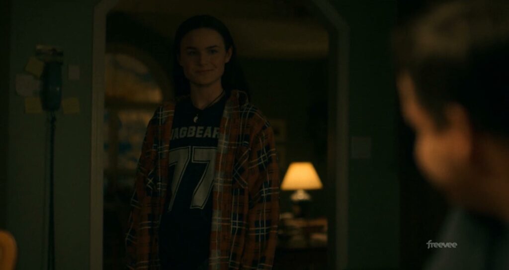 Patrick is sitting at the kitchen table when Sara walks up and thanks him for the guitar. She asks how he is and he tells her that he has had better months. She responds that she’s sorry and he apologizes for calling Kurt Cobain a slur. Sara says that it’s okay and he responds that it isn’t, he really messed up, and he’s glad he has her to keep him in check. She asks if he wants to watch the game and they go to the living room.