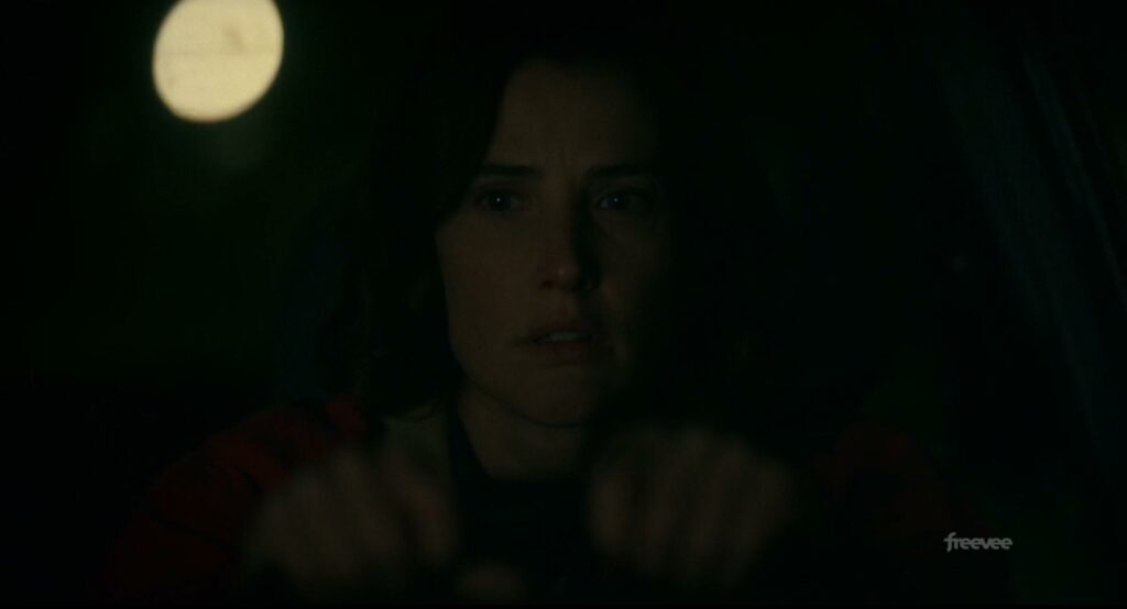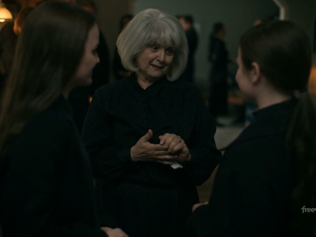 Simone and Patrick are at his mother’s house, cleaning up for her. Simone asks if she has anything to eat for dinner and Mary responds that she still has leftovers from the memorial service. Simone tells her that she’ll bring her dinner later that night and they leave. Mary stares ahead lifelessly at the television.