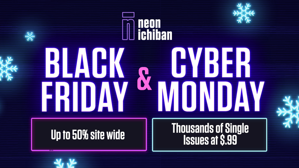 NEON ICHIBAN LAUNCHES FIRST BLACK FRIDAY / CYBER MONDAY SALE: “For the first time, Neon Ichiban—the future-forward digital comics and manga platform —is launching a Black Friday/Cyber Monday mega-sale that spans thousands of single issues and collections from publishers including, in alphabetical order, Dark Horse Comics, DC, DSTLRY, Dynamite, Kodansha, Legendary, Mad Cave, Marvel, Oni, Rebellion, and Vault.
