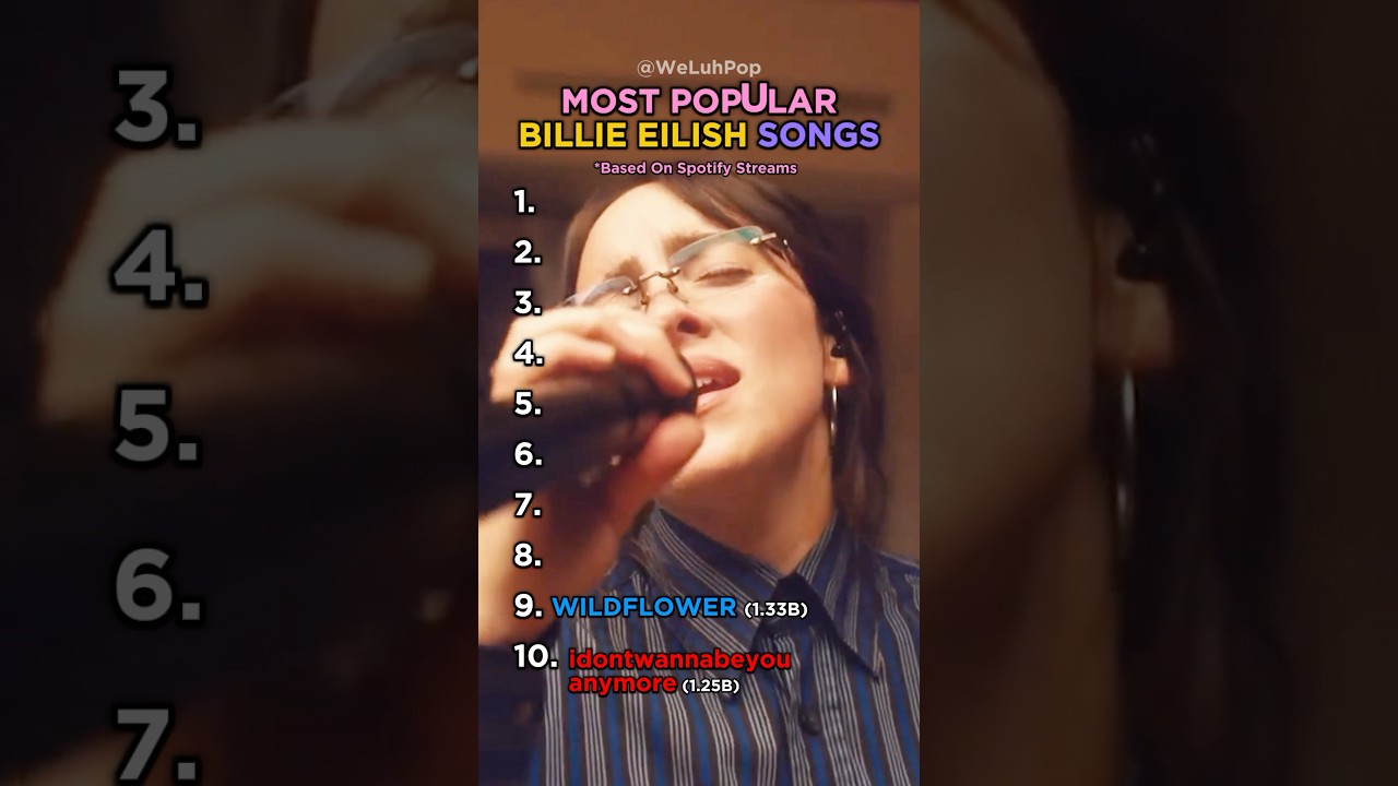 Most Popular Billie Eilish Songs #billieeilish #hitmehardandsoft #top10 #pop #ranking #popmusic #yt