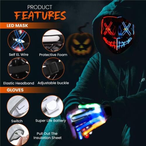 2pc Purge Halloween Mask and LED Gloves Adult Scary Halloween Mask Costume