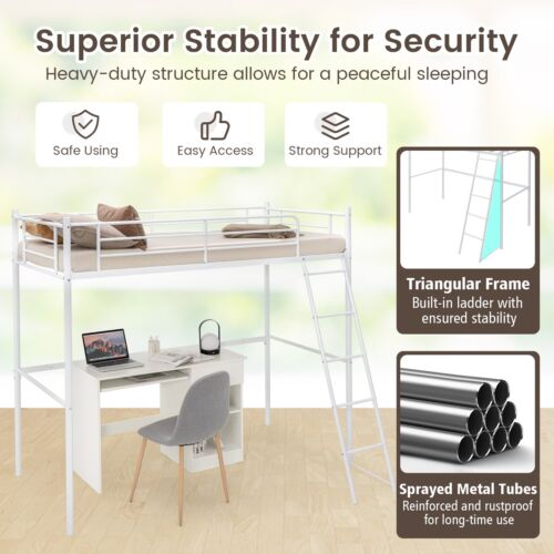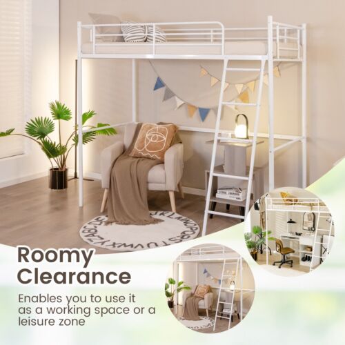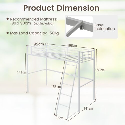 3.5FT Single Metal Bunk Bed High Sleeper Ladder Bed Space-Saving Loft Bed Frame