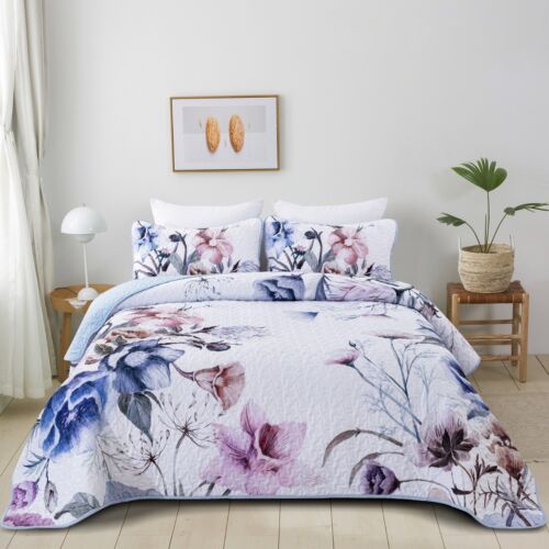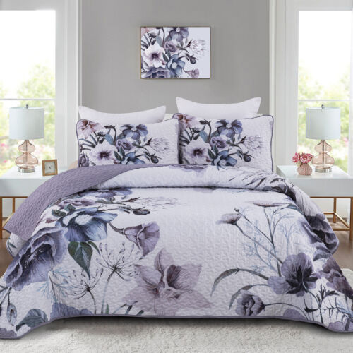 3 Piece Patchwork Bedspread Quilted Throw Bedding Double King Size Pillowcase