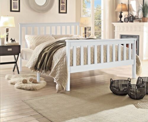 4Ft Pinewood Bed Frame Wooden White Small Double Solid 198X128X82cm Adult/Kids