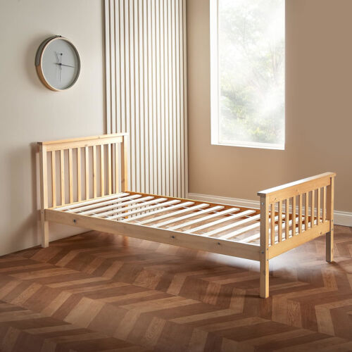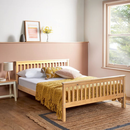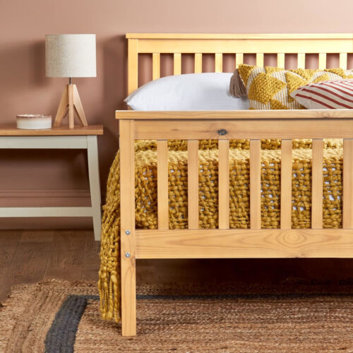 Bed Frame Single Double Bed 3ft 4ft6 Light Wood Pine Wooden Bed & Mattress Set
