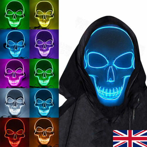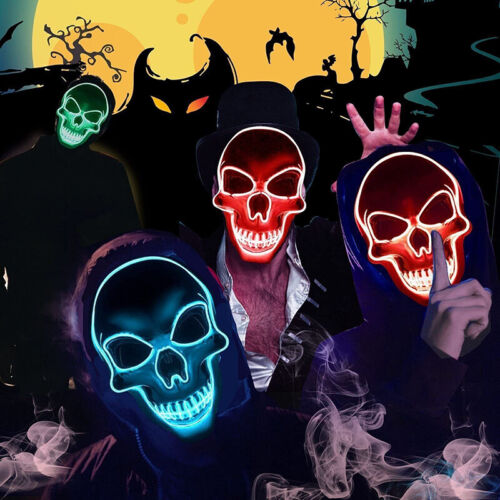 Halloween Skeleton LED Mask Glow Scary Skull Mask Light Up Costume Cosplay Masks
