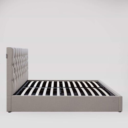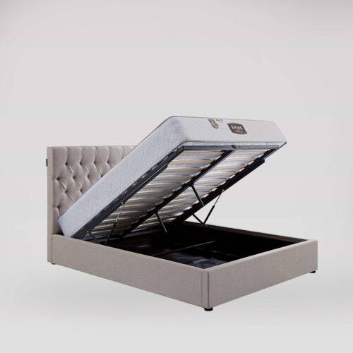 Sandra Oatmeal Fabric Ottoman Storage Bed